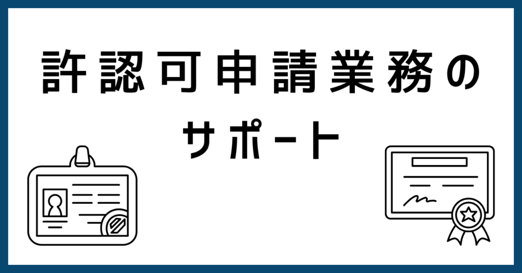 建設業許可、宅地建物取引業免許、古物商許可、飲食店営業許可などの許認可申請業務のサポートを行っています。