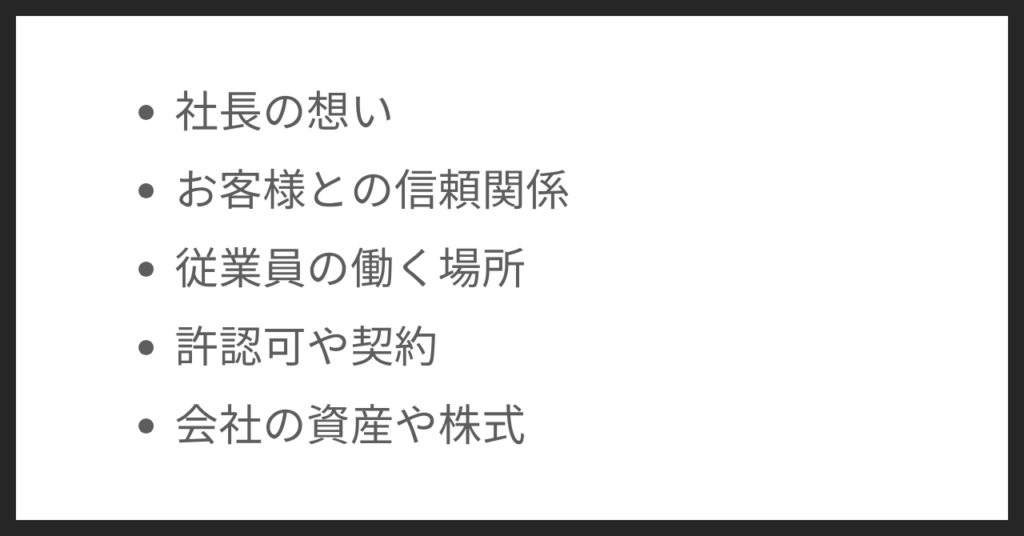 事業承継とは、「人(経営権)」+「資産(自社株・財産)」+「想い(理念・技術)」をセットで次の世代にバトンタッチするための準備のことです。