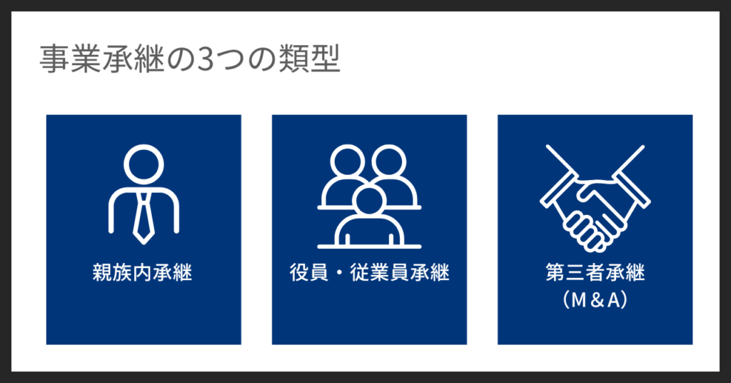 経営者から、自らの親族(子、配偶者、兄弟姉妹など)に事業を引き継ぐ方法のことです。